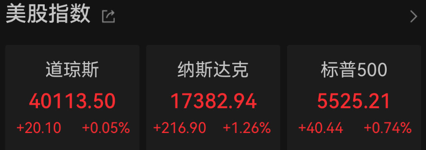 昨夜今晨,美国三大股指全线收涨。